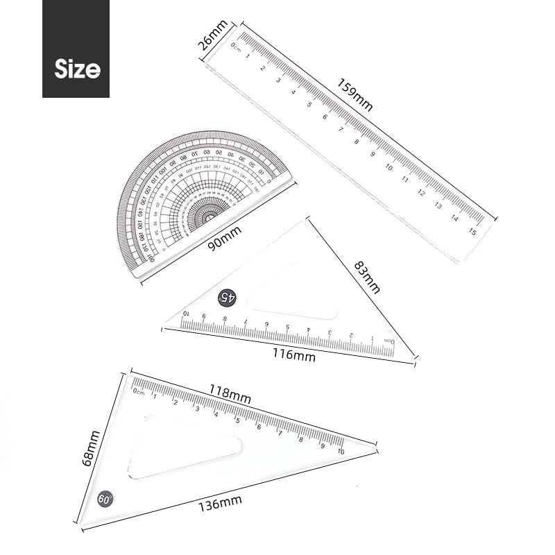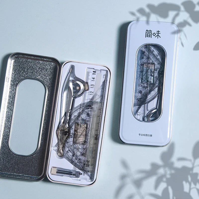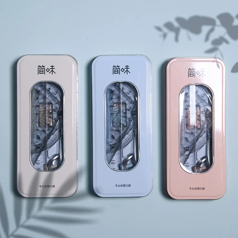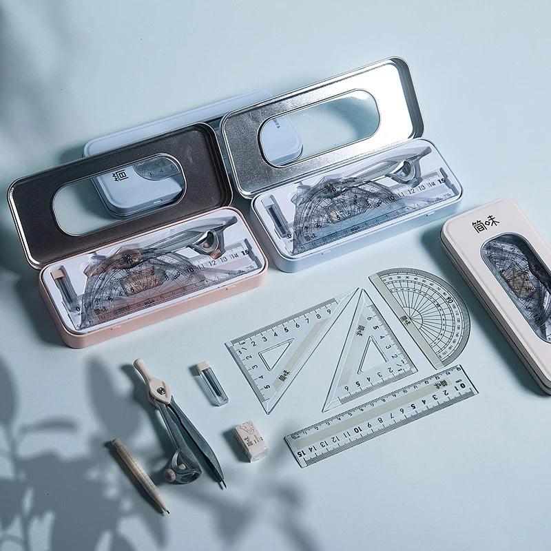Composition: ruler*1. Triangle ruler*2. Protractor*1. Eraser*1. Lead core*1. Drawing compass*1.pencil*1